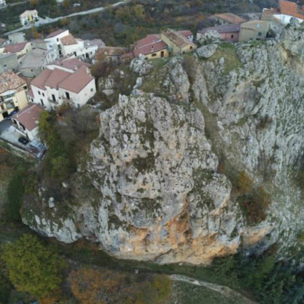 1. l’area di intervento 1 è interposta tra l’edificato dell’antica urbanizzazione a monte ed una zona di recente edificazione ed espansione a valle ed è caratterizzata dalla presenza di una rupe rocciosa sub-verticale fratturata (dislivello medio di 60mt) che presenta fenomeni di distacco di massi di grande diametro.
